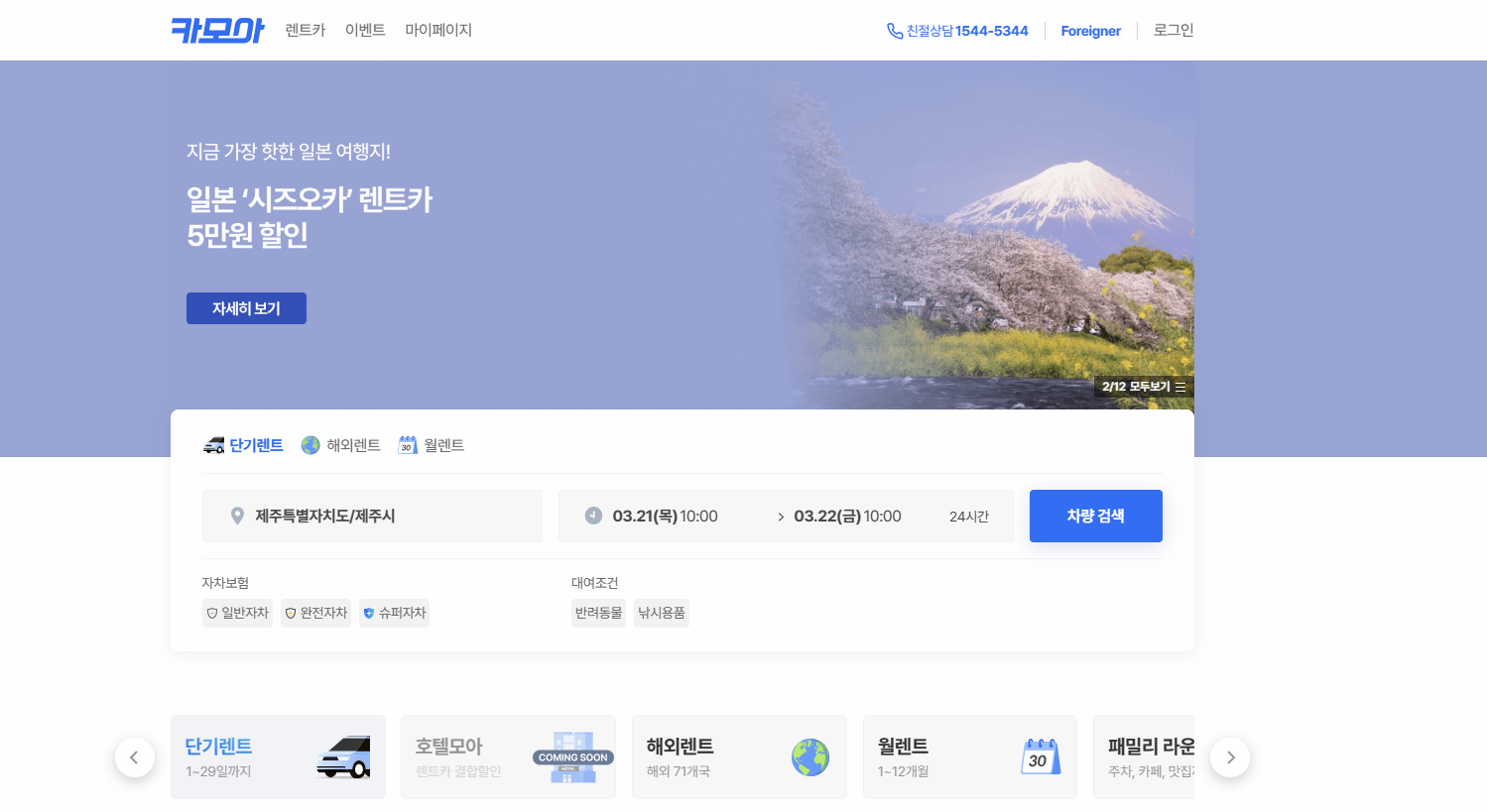 ▶ 카모아 렌터카 가격비교 사이트 바로가기