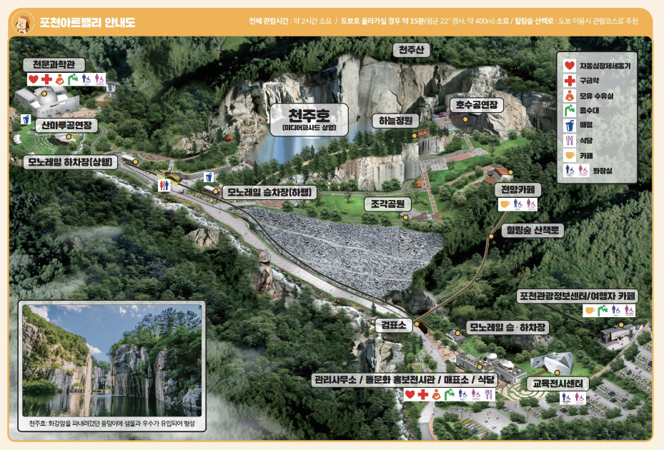 포천 아트밸리는 경기도 포천시 신북면에 위치한 복합 문화 예술 공간입니다. 과거에는 폐채석장이었던 곳이지만, 2003년부터 환경 복원 사업을 통해 아름다운 자연과 예술이 조화를 이루는 공간으로 변모했습니다. 오늘은 지난 주말 철원 한탄강 주상절리 여행 이후 서울로 돌아오다 방문하게 된 포천 아트밸리에 대해 포스팅해 보겠습니다.